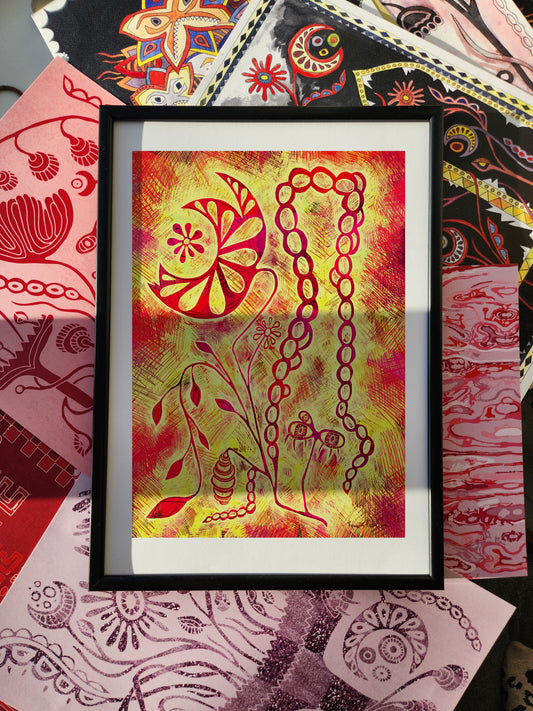 Chaque œuvre est soigneusement emballée dans un papier protecteur et placée dans un carton résistant pour garantir une livraison en parfait état. Je prends grand soin de préserver l'intégrité de chaque tirage.